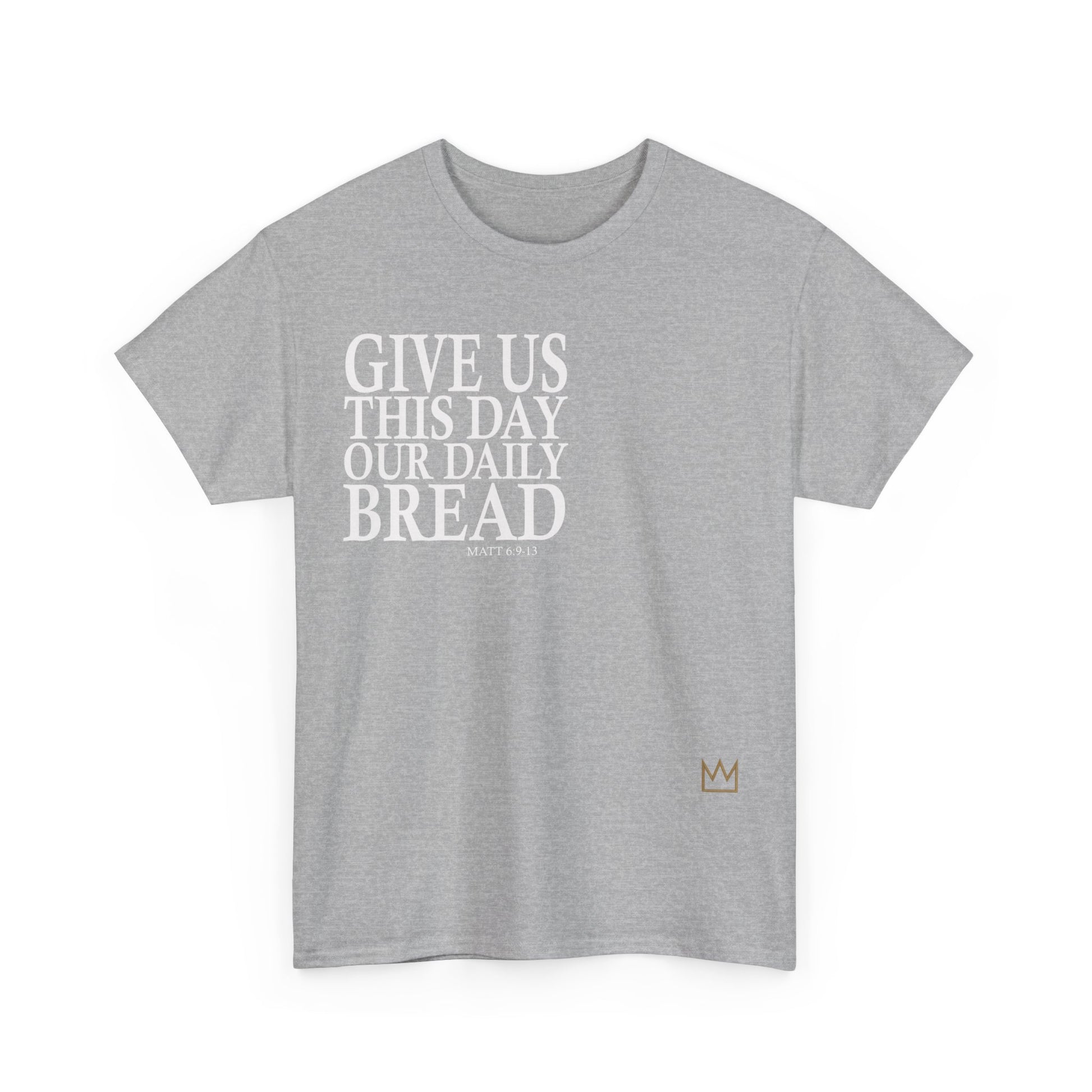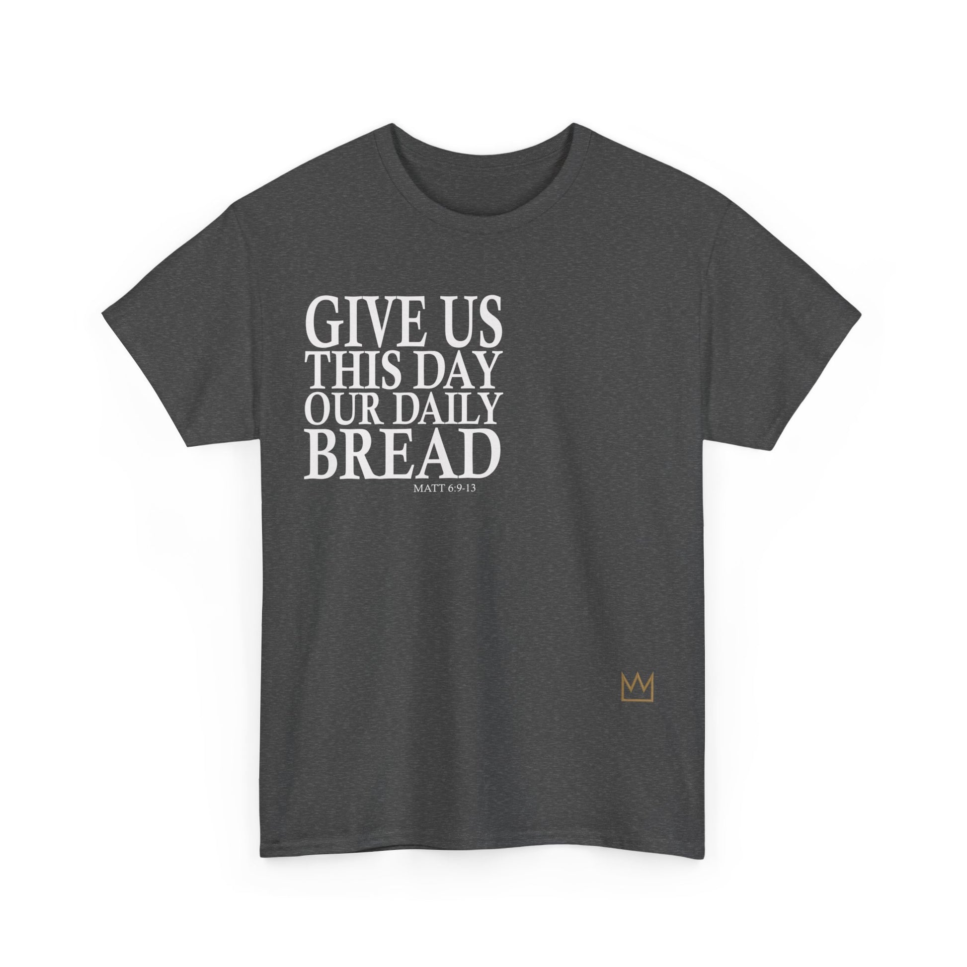 Be reminded of how God gives us our provision daily. Inspiring Design: The heart of this t-shirt lies in its message, "Give Us This Day Our Daily Bread," boldly emblazoned across the chest. The design is simple yet impactful, serving as a visual cue to pause, reflect, and express gratitude for life's provisions.
